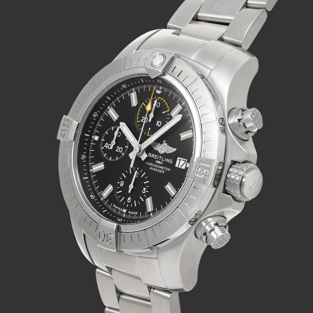 Der Avenger Chronograph 45 von Breitling ist ein wahres Präzisionsinstrument und verkörpert den Geist professioneller Uhren. Diese Uhr vereint robuste Bauweise mit hervorragender Ablesbarkeit und wird von einem zuverlässigen Manufaktur-Automatikwerk angetrieben.