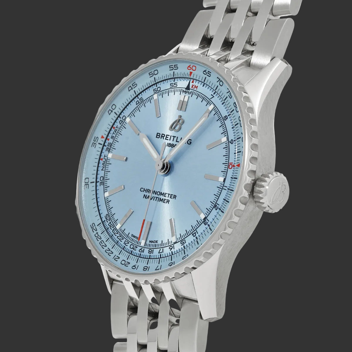 Ob Sie nun ein Luftfahrtbegeisterter, ein Liebhaber mechanischer Uhren oder ein Sammler auf der Suche nach einem ikonischen Zeitmesser sind – die Navitimer besticht durch ihren markanten Charakter und ihre Chronometerzertifizierung. Ihr automatisches Breitling-Kaliber 17 garantiert absolute Zuverlässigkeit im Alltag.