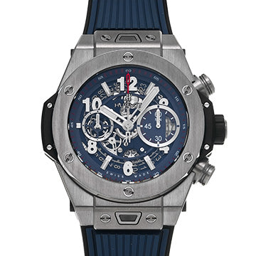 Met zijn 45 mm-behuizing in geborsteld titanium en zijn karakteristieke achthoekige lunette oefent deze Big Bang Unico zijn aanwezigheid uit zonder comfort op te offeren. De skeletwijzerplaat geeft zicht op het kloppende hart van de HUB1242-kaliber, terwijl de rode chronograafwijzer een vleugje dynamisme toevoegt.