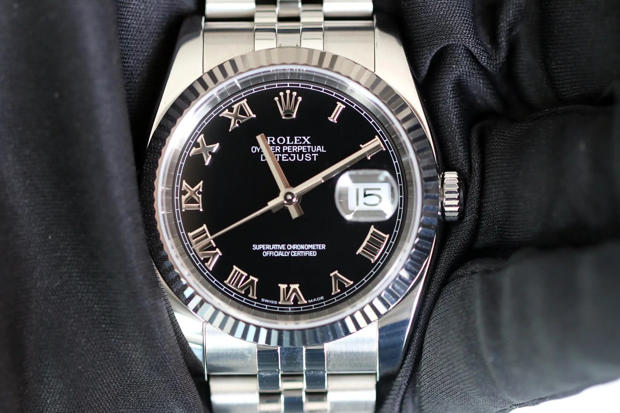 Die Datejust ist seit 1945 eines der ikonischsten Modelle von Rolex. Diese Referenz 116234 aus dem Jahr 2015 kombiniert ein 36-mm-Stahlgehäuse mit einer geriffelten Lünette aus Weißgold, wodurch ein eleganter Kontrast entsteht. Das schwarze Zifferblatt ist mit römischen Ziffern verziert und bietet einen klassischen und zugleich selbstbewussten Look. Montiert an dem unverwechselbaren Jubilé-Armband aus Stahl, kann diese Automatikuhr sowohl im Alltag als auch zu formellen Anlässen getragen werden. Ausgestattet mit einem Automatikwerk, das für seine Robustheit bekannt ist, wird diese Datejust im Full Set mit Originalbox und Papieren angeboten. Sie ist sowohl für Liebhaber gebrauchter Luxusuhren, die ein vielseitiges und zuverlässiges Stück suchen, als auch für den erfahrenen Sammler geeignet.