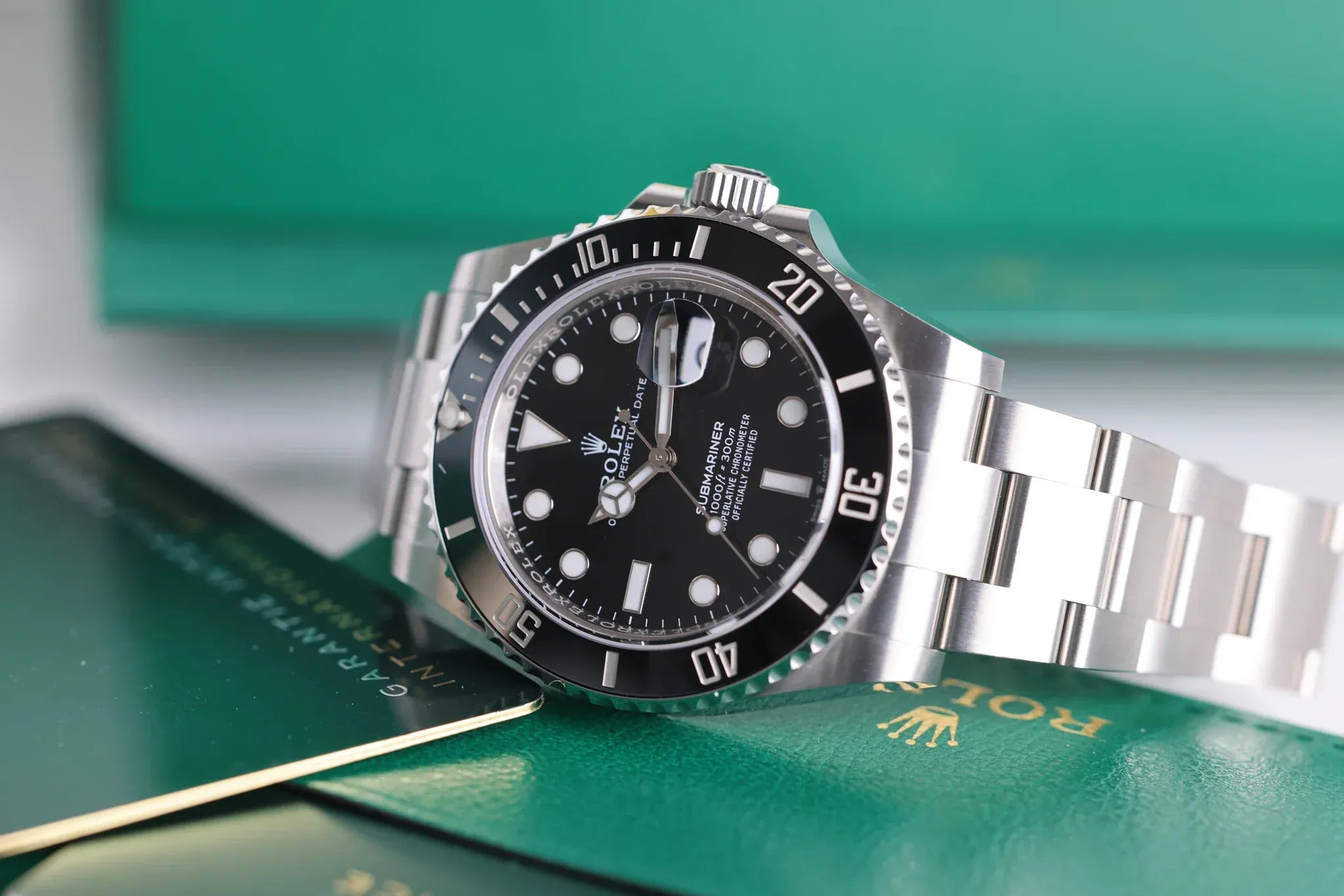 Von unseren Experten sorgfältig ausgewählt, wird diese neue Submariner mit ihrem vollständigen Originalset geliefert. Sie genießt 5 Jahre Garantie und das Qualitätsversprechen von L'Écrin Genève: zertifizierte Authentizität, sofortige Verfügbarkeit und persönlicher Service.