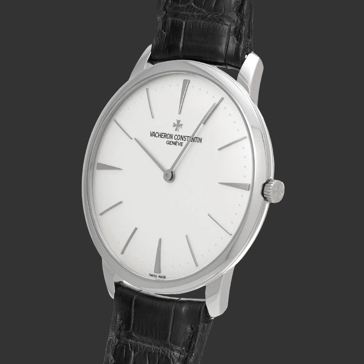Die Vacheron Constantin Patrimony 81180 verkörpert die Essenz der Genfer Haute Horlogerie. Diese 40-mm-Weißgolduhr besticht durch ihren raffinierten Minimalismus und ihr bemerkenswert flaches Profil mit einer Dicke von nur 6,8 mm. Ein moderner Klassiker für Kenner eleganter Uhren.