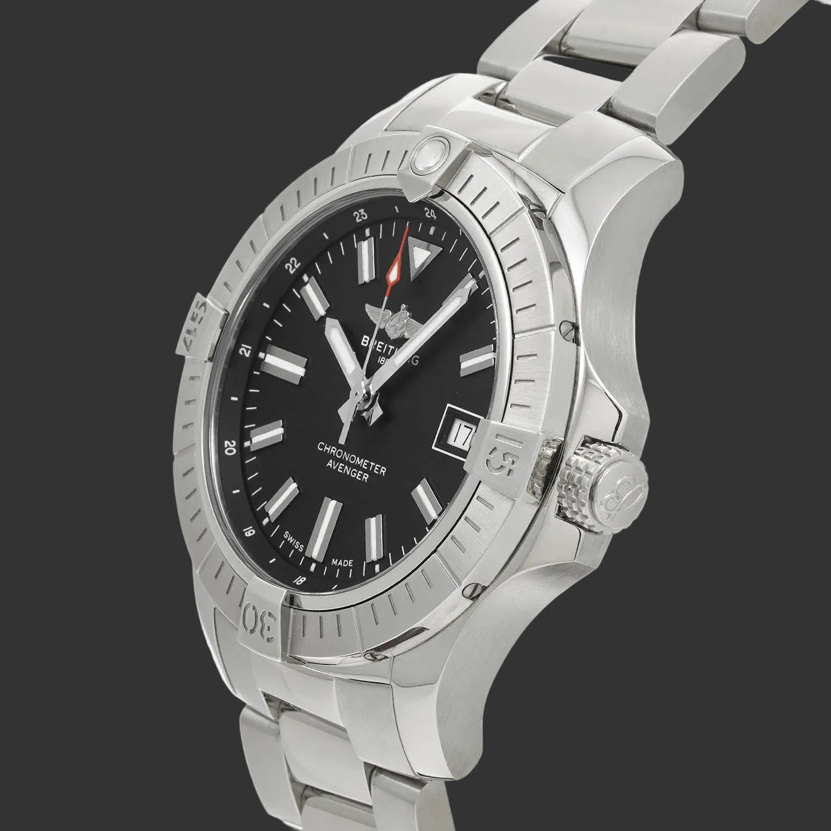 The Breitling Avenger Automatic 43 embodies the spirit of tool watches designed for demanding professionals. With its impeccably legible black dial and COSC certification, this timepiece combines robustness and chronometric precision.