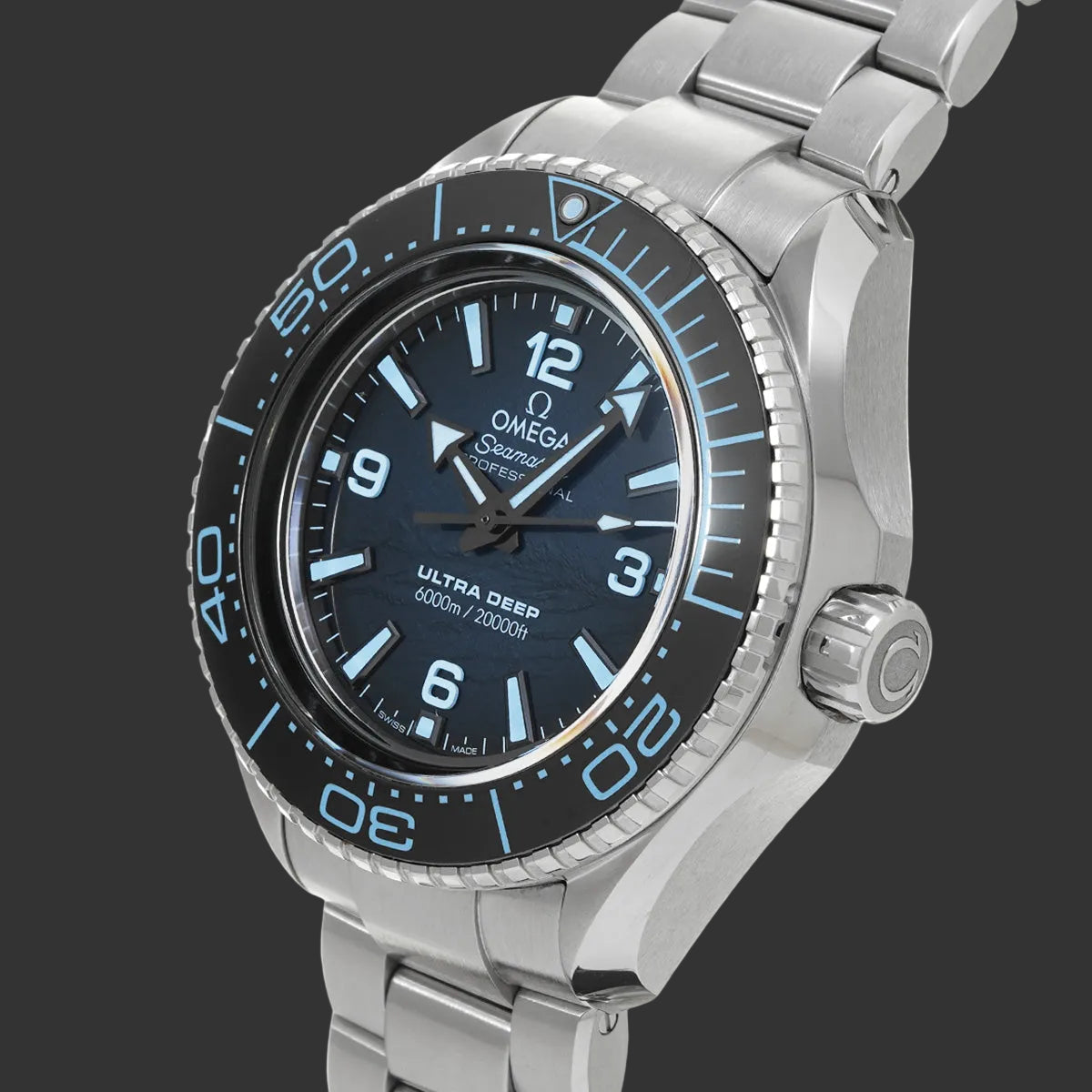 The Omega Seamaster Planet Ocean Ultra Deep Summer Blue embodies technical excellence taken to its extreme. With its 6000-meter water resistance rating, this professional diving watch is aimed at enthusiasts seeking an exceptional timepiece capable of withstanding the most extreme environments while maintaining remarkable elegance.