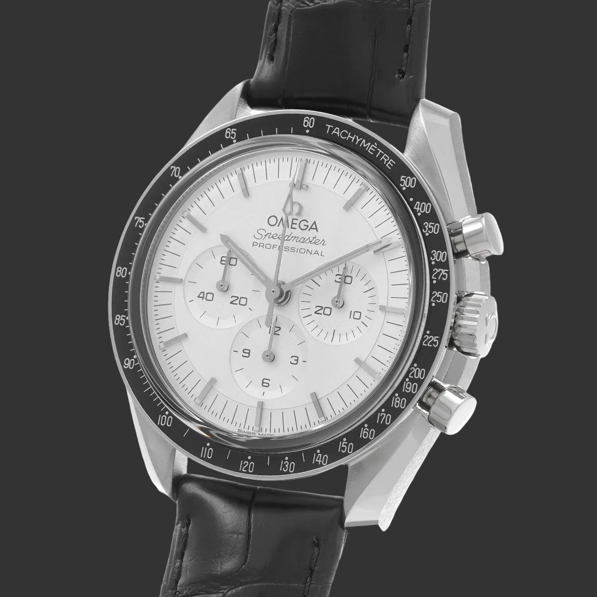 The Speedmaster Moonwatch reference 310.63.42.50.02.001 transcends the status of a legendary chronograph to become an absolute collector's item. Crafted in 18-carat Canopus Gold, Omega's exclusive alloy of brilliant, tarnish-resistant white, it combines the astronauts' watch heritage with exceptional refinement.