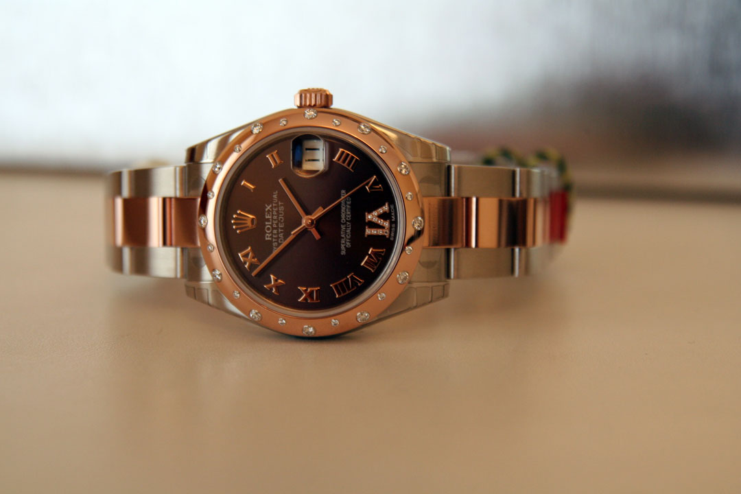 A timeless icon of refined femininity, this Rolex Datejust 31 reveals a subtle marriage of Oystersteel and 18-carat Everose gold. Its chocolate brown dial, enhanced with gold Roman numerals and Dauphine hands, exudes a sophisticated warmth that captivates at first glance.