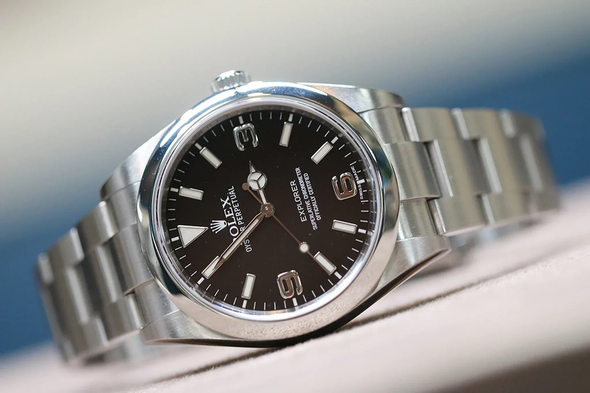 With its 39mm steel case and characteristic smooth bezel, this Explorer displays an assured presence without ostentation. It slips just as easily under a cuff at a meeting as on the wrist of a hiker. It is this rare versatility that has captivated sport-chic watch enthusiasts for decades.