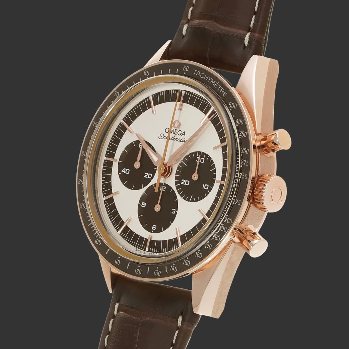 Cette Speedmaster 311.63.40.30.02.001 célèbre un moment fondateur de l'histoire spatiale : le vol de Wally Schirra en 1962, première Omega à conquérir l'espace. Produite exclusivement en 2015, cette édition commémorative en or Sedna incarne l'élégance vintage des chronographes des années 60.
