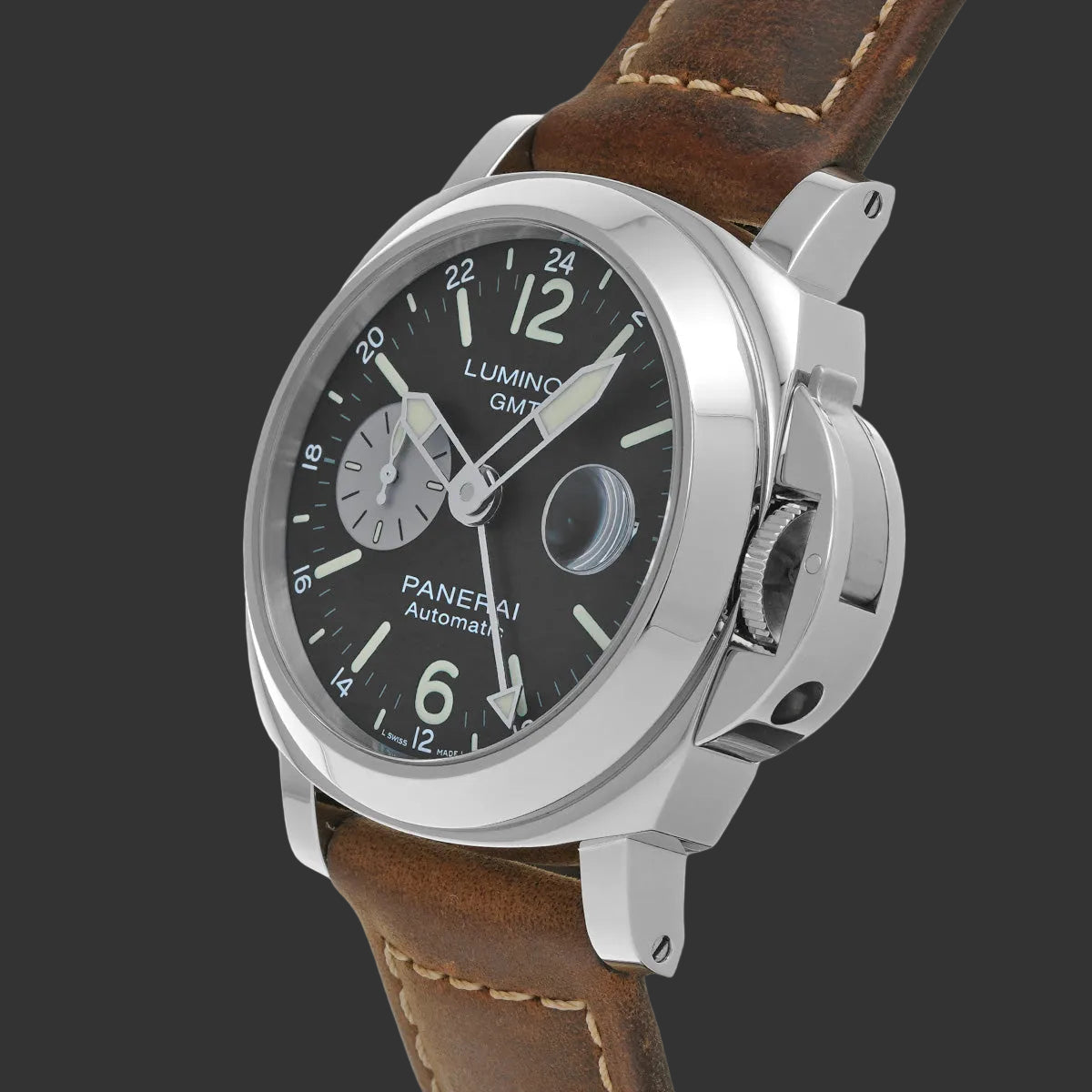 La fonction GMT permet de suivre un second fuseau horaire d'un simple regard. Cette Panerai occasion full set de 2021 s'adresse à l'homme d'action qui refuse de choisir entre élégance et fonctionnalité, entre bureau et escapade.