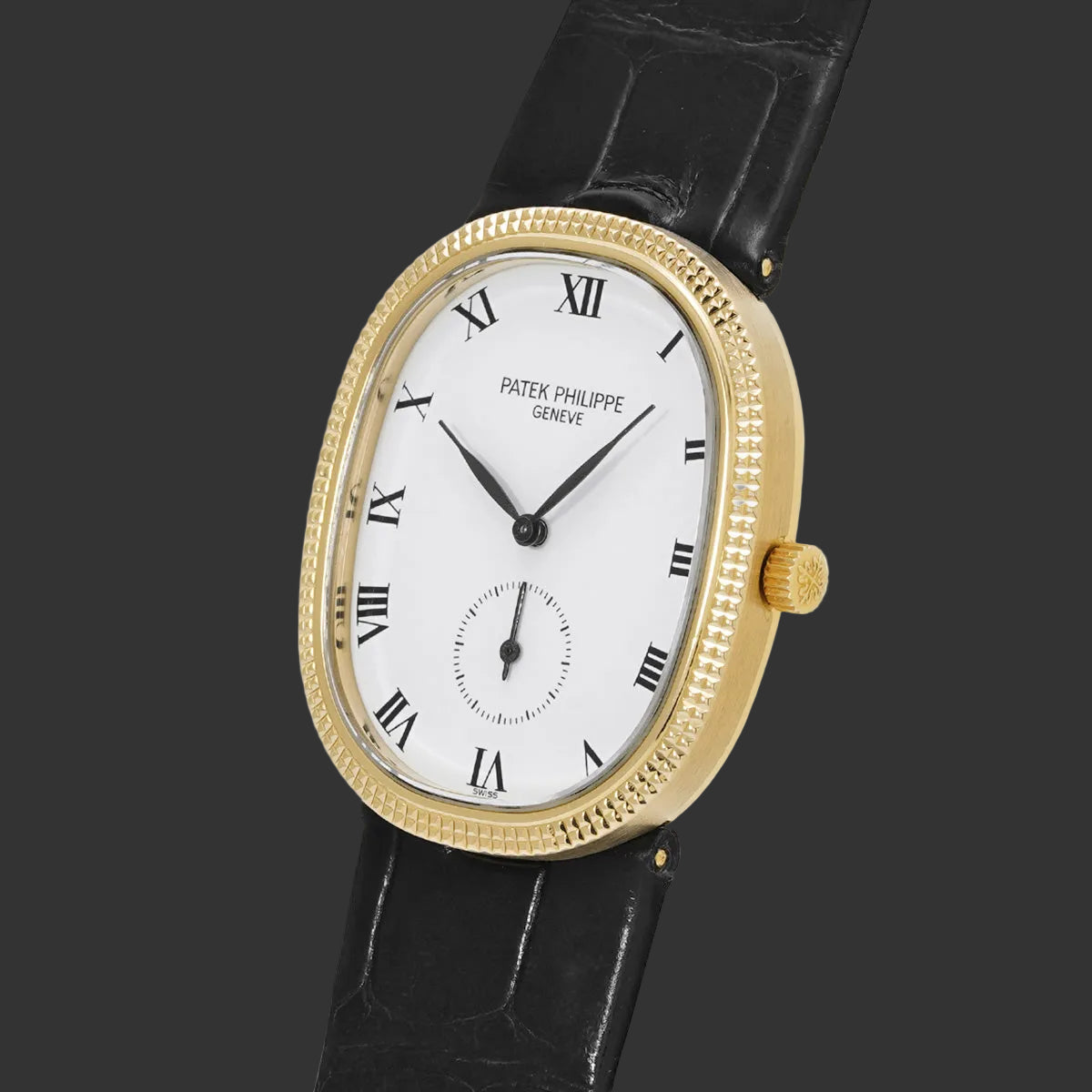 La Golden Ellipse incarne depuis 1968 la vision esthétique unique de Patek Philippe. Cette référence 3987J en or jaune 18 carats illustre parfaitement le raffinement de la maison genevoise, avec sa forme ovale inspirée du nombre d'or et son charme intemporel.