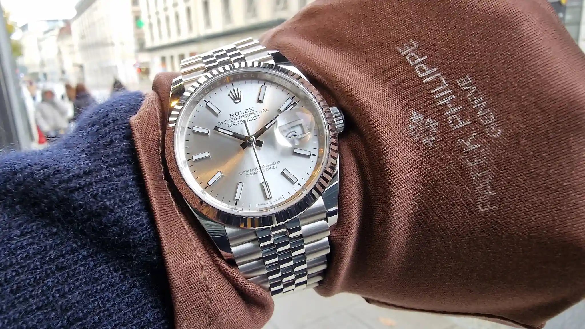 Le cadran argent illuminé par des index bâtons et les emblématiques aiguilles luminescentes créent une lisibilité parfaite. Le bracelet Jubilé, avec son alternance de mailles polies et brossées, épouse le poignet avec une fluidité remarquable. Une montre qui s'adapte aussi bien au costume qu'à une tenue décontractée.