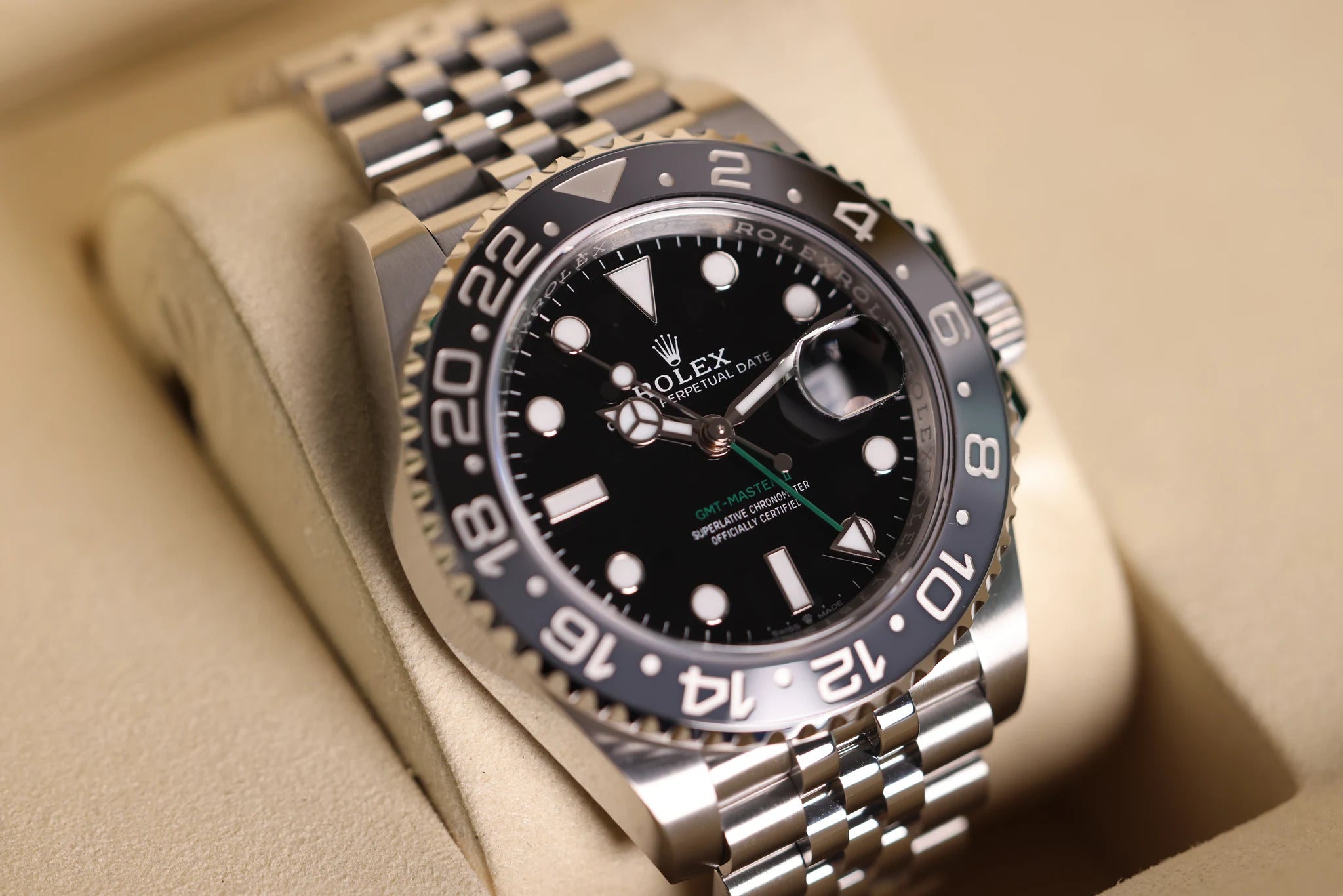 Cette référence s'adresse à celui qui recherche une Rolex sportive sans ostentation. Capable d'afficher trois fuseaux horaires simultanément grâce à son aiguille GMT, elle accompagne aussi bien le dirigeant globe-trotter que l'amateur éclairé souhaitant une pièce polyvalente et investissement pérenne.
