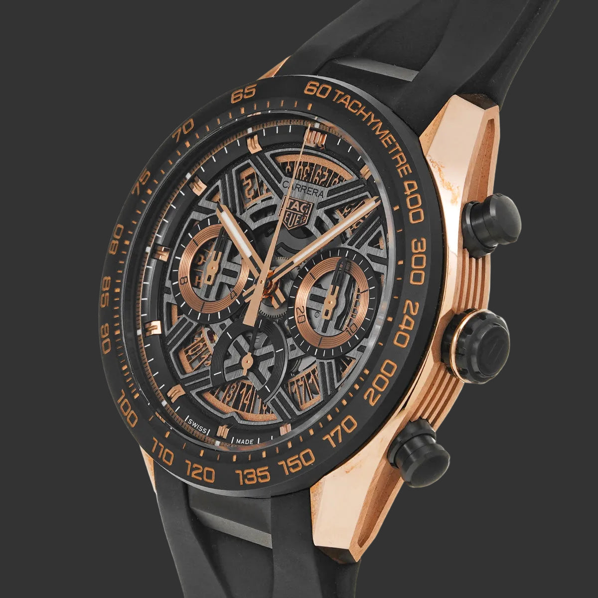La TAG Heuer Carrera Sport Extrême CBU2050 incarne la fusion parfaite entre héritage sportif et sophistication contemporaine. Ce chronographe squelette dévoile sans pudeur son cœur mécanique à travers un cadran ajouré hypnotisant, sublimé par des touches d'or rose 18 carats.