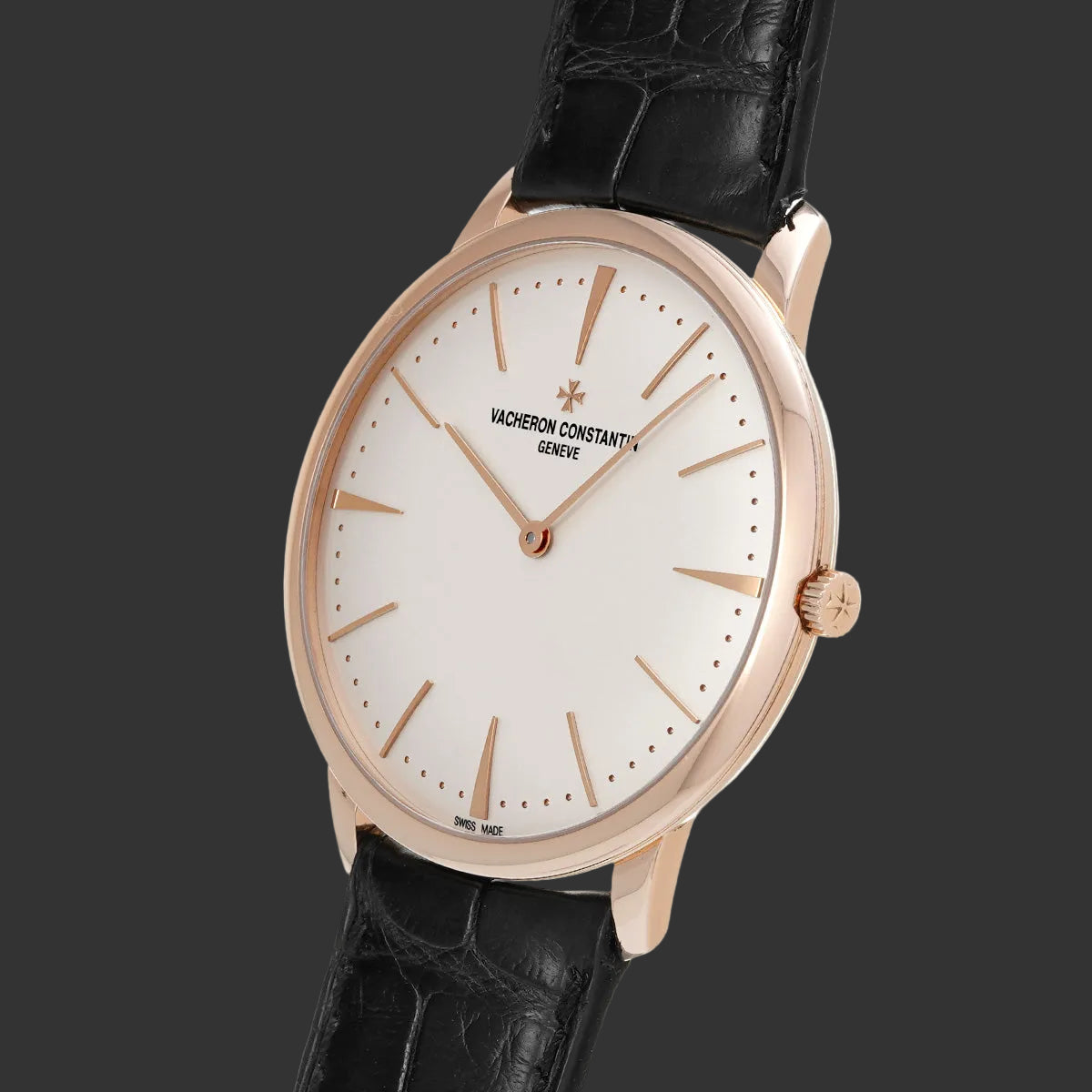 Signée par l'une des plus anciennes et prestigieuses manufactures horlogères au monde, cette Vacheron Constantin Patrimony incarne l'essence même de la haute horlogerie genevoise. Son boîtier en or rose de 40 mm, d'une finesse remarquable de 7 mm, épouse le poignet avec une discrétion luxueuse.